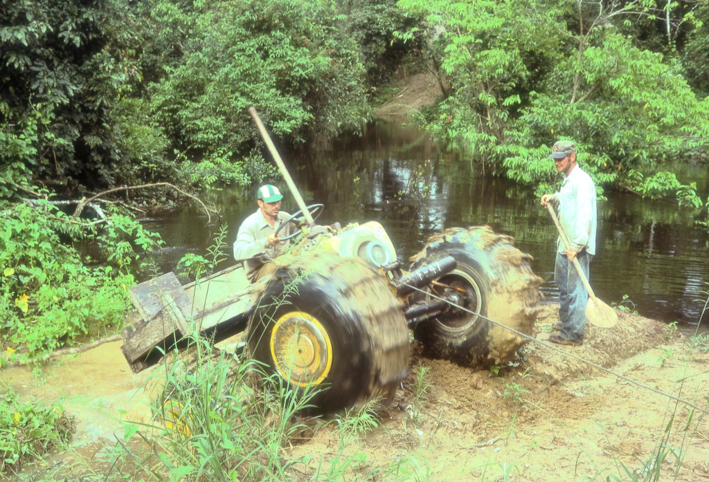 Today we celebrated Easter Sunday in a non-traditional way, bouncing around on the buggy, jumping off frequently to slop through mud holes, or to winch the swamp tractor out of the muck. We got stuck twice. We had to completely unload the trailer twice and portage all our gear across the river. At another crossing we cut a “road” around the “bridge” and pulled and winched the buggy to the other side. At the last bridge before Hediondo, the winch cable snapped so we left the buggy and all of us came on in the boat leaving our things to be retrieved in the morning.