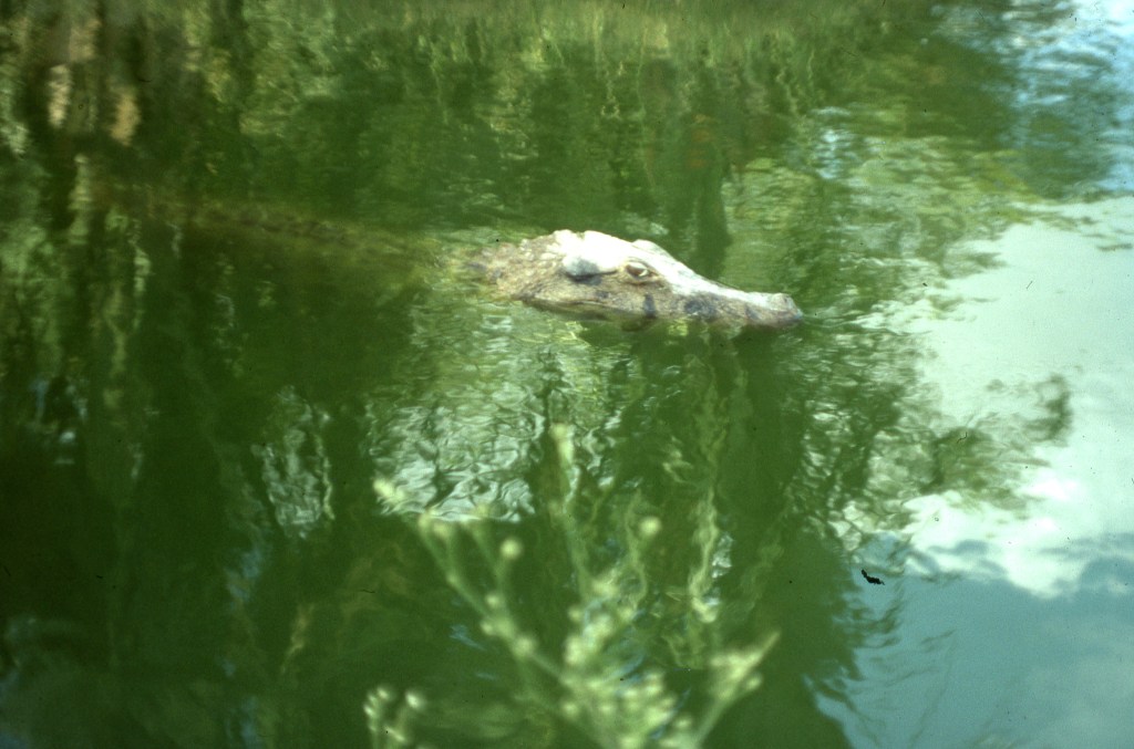 As we walked by a water hole we saw a small caiman slide off the bank and disappear under the moss covered surface. Tibaquite began making a noise that originated deep in his throat. He was imitating the guttural call of the reptile. His rendition would have fooled me, especially if it was dark and I was alone on the river! I guessed the caiman wasn’t fooled because it never resurfaced.