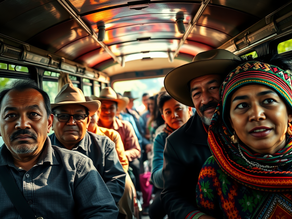 Many of the passengers were highlanders who had moved to the lowlands to be able to own land and farm it. The men blended in well with the typical lowland Bolivians and dressed in shirts, trousers, and sandals. The footwear was often made from old tires. Their women, on the other hand, dressed like they did when they still lived in the cold. Many wore more skirts, blouses, and sweaters than the new climate required. Layered clothing was great for the cold of the Andes mountains, but in the tropics it just made one sweat more.