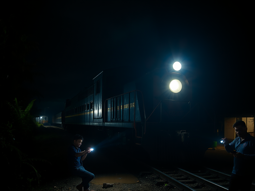It was early, but I had nothing more to do. I blew out my candle and soon fell asleep. At 9:10 pm I was rudely awakened by the loud blast of a train whistle and the braking of heavy iron wheels on the tracks. I clamored out of the warmth of my sleeping bag, and crawled into the dampness of my clothes. I nearly knocked the tent down as I rushed out to see what was happening.