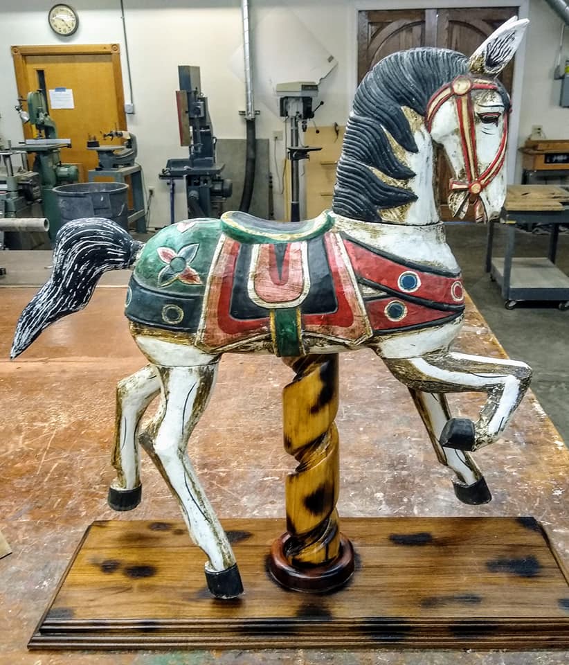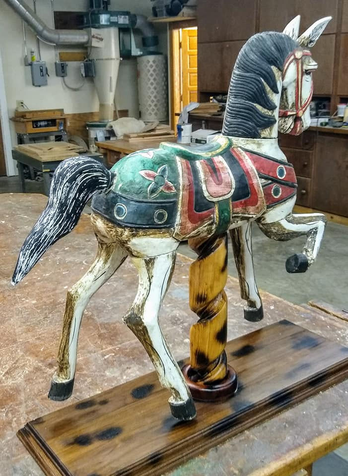 This year for our anniversary, I decided to resurrect it and give it back to Jackie a second time. I dug it out, found the leg, and pinned it with a wooden dowel to make it strong. The ear gave me problems. As hard as I tried to remember, I could not find it (I’m at the age when “sometimers” is starting to take over). Instead, I stood on the street corner yelling, “Friends, lend me your ears.” Nobody listened! I realize now, that was EARresponsible behavior. Luckily the ear was not EARreplaceable and I was able to carve a new one. The new model is reinforced with window screen and JB Weld! I carved a new tail, also, to restore the horse to its glory days when it was new.