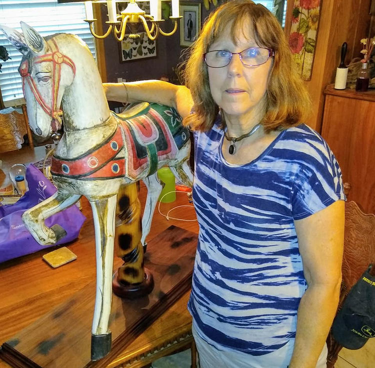 We now have three cats and a dog, all inside pets. To solve the problem of the horse falling over every time an animal runs by, I mounted the horse on a spiral pole, kind of like Merry-Go-Round horses have, and bolted that to a study platform. Hopefully, now, it will even survive a Florida Hurricane!