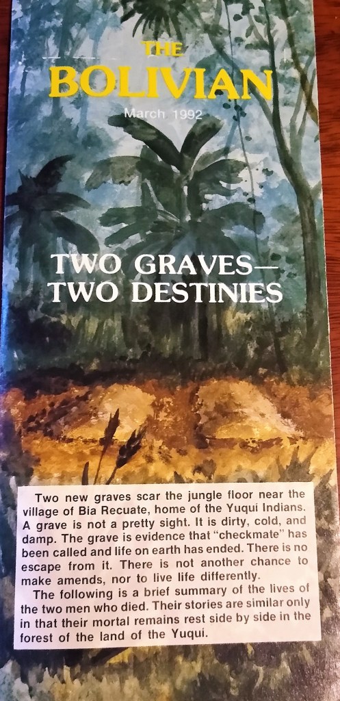 The following is a summary of the lives of the two men who died. Their stories are similar only in that their mortal remains rest side by side in the forest of the land of the Yuqui.