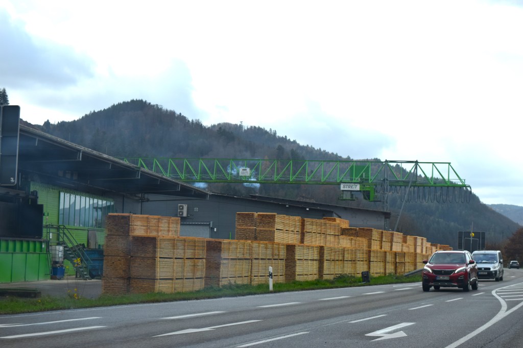 I was amazed at all the saw mills still in operation in the Black Forest. Some of them had hundreds of thousands of board feet of lumber stacked outside waiting to go to market, and each one had a mountain of logs awaiting their fate with the bandsaw.