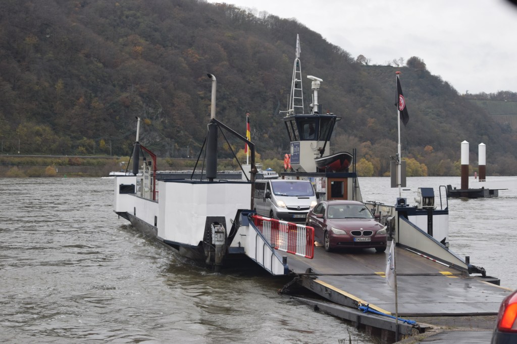 We arrived at a crossing and for eight $Euros we could cross to the other side. Heather drove her car onto the ferry, and we were soon on our way to the far shore. If we could not cruise down the Rhine, at least we could cruise across the Rhine!