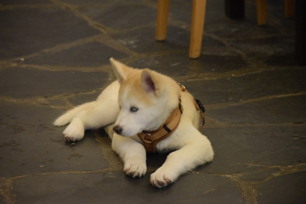 The owner had an eight-month-old Husky-cross dog, the color of butterscotch. He was really cute!