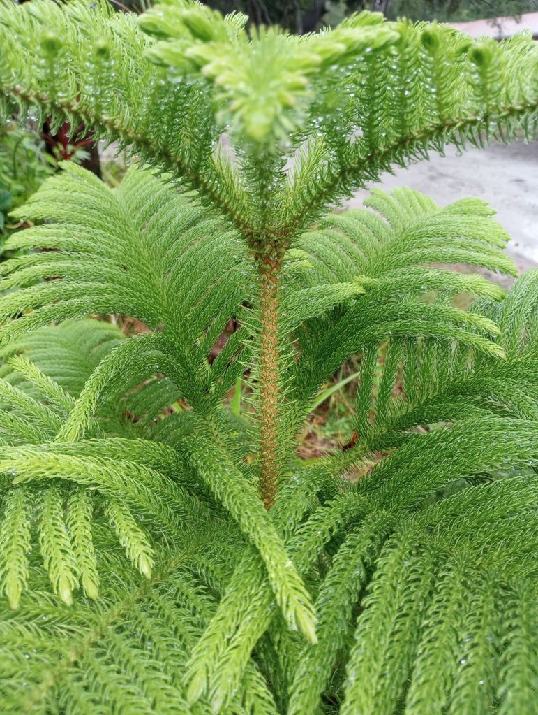 Since transplanting my little tree into the yard it has grown taller and pretty pine-green colored needles have again returned to its branches. If the trauma of neglect during seedling to sapling years still lurks beneath its bark, holding it back from reaching its full potential, it hides it well. It has become the tree I envisioned the day I brought it home, vibrant, and prettier than all the other kinds of pines that claim Florida as home!