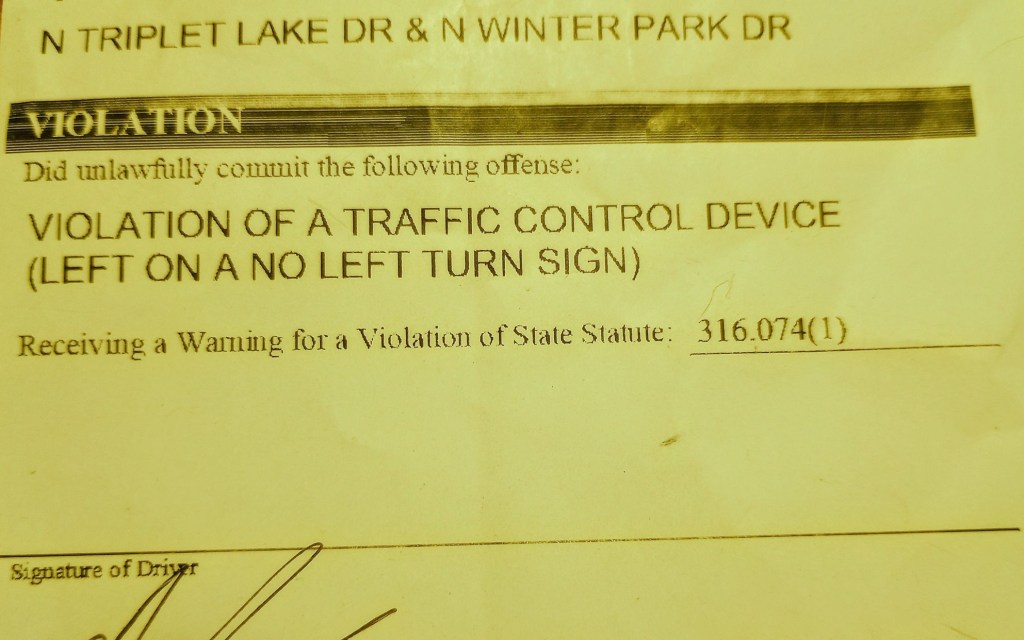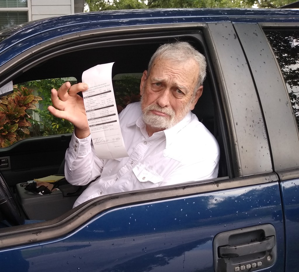 Maybe it was the man tears that changed his mind. Most law officers do not know how to deal with a blubbering male basket case. Okay, maybe I was not that distraught, but I felt that way! I was guilty! I broke the law, even if I did not know that I did it, but instead of a $158 ticket, he gave me a written warning!