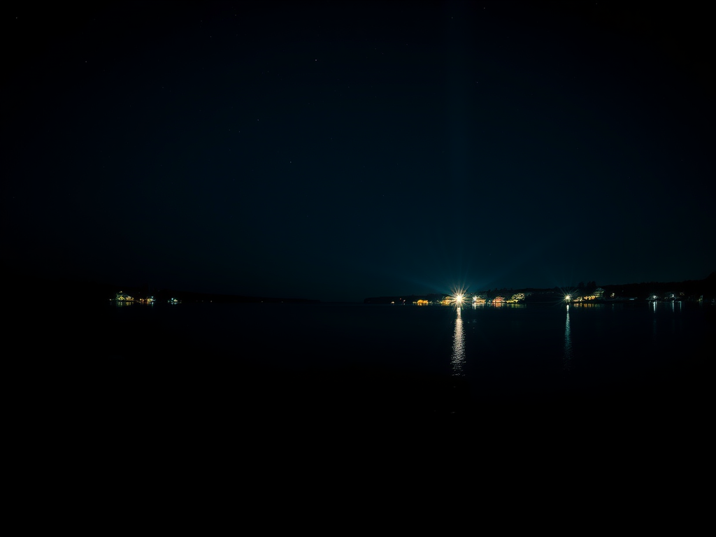 The time was after nine o’clock. It was dark! Flickers of light from lake houses and docks looked like stars from galaxies far away. They reflected on the water in shimmering beams of white. Sadly, none was a beacon to lead us home. The blackness of the night had erased all landmarks. I had no idea which way to go!